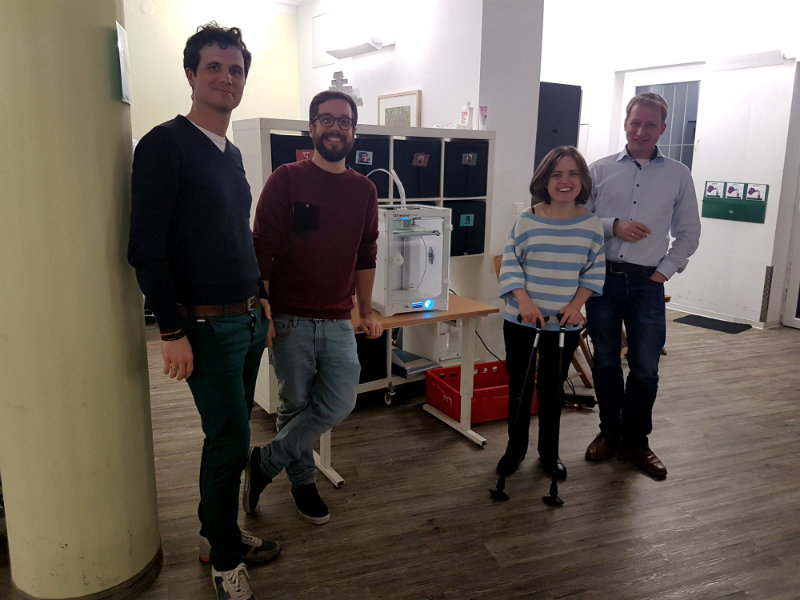Zwei Mal in der Woche findet hier der Druck-Betrieb statt. Dann surren die Maschinen und spucken Hilfsmittel aus. „Wir wollen alles ganz einfach gestalten. Die Hilfsmittel stehen im Regal, daran hängt eine SD-Karte, die dann nur noch in den Drucker kommt“, erklärt der Forscher und Neu-Maker seine Idee. Es geht um Hilfe zur Selbsthilfe. Der Name „Selfmade“ ist Programm.