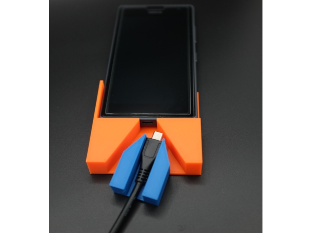 Nach meinen kaum nennenswerten Französischkenntnissen zu urteilen, hat eine Gruppe von Ergotherapeuten aus Lyon eine Lösung gefunden und auf Thingiverse hochgeladen. Eine simple Führung, in die das Handy geschoben wird und ein Ladekabel, das die Spitze eines Dreiecks darstellt. Beides lässt sich nun im Handumdrehen zusammenschieben. Damit sind die nächsten Stunden Smartphone-Daddelei gesichert!