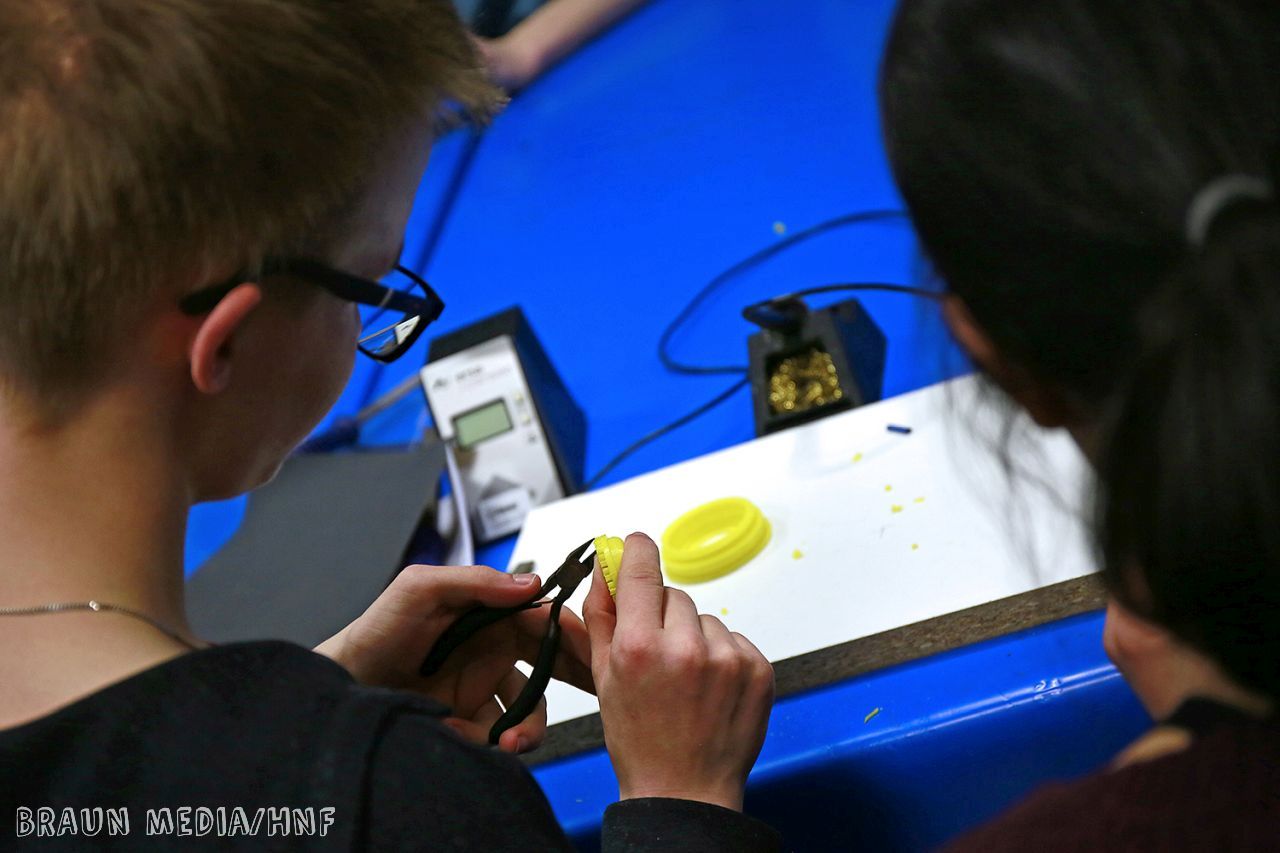Es wird heiß – 300°C! Schüler löten Taster im inklusiven Workshop