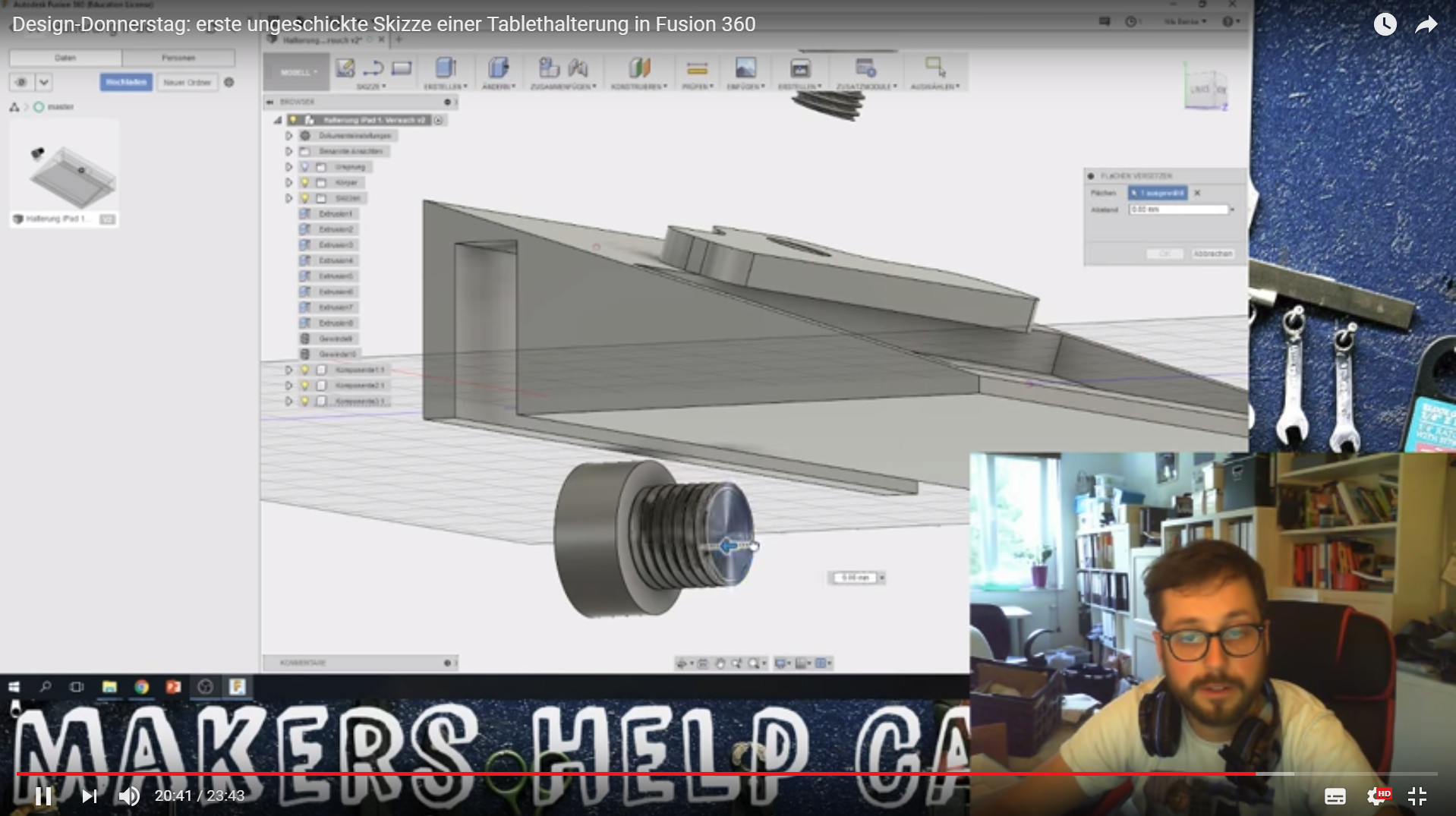 Etwas verwirrt schaue ich in diesem Livestream manchmal auf den Monitor. Ein wenig planlos ist die Skizze noch, doch so geht es häuft los. Im Gegensatz zur Einhandschere von der Vorwoche ist dies wirklich die allererste Skizze gewesen. Ich denke aber, dass ich damit schon mal etwas probedrucken kann. Leider ist die Größe ein wenig das Problem. Aber was erzähle ich denn alles? Wer es nicht gesehen hat, kann es jetzt auf Youtube schauen: