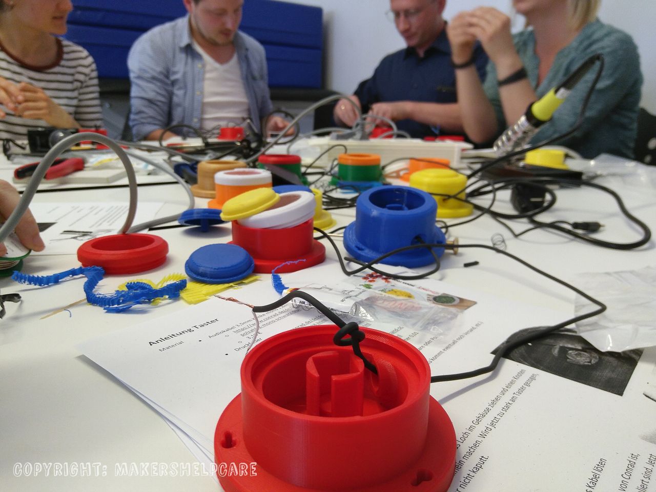 Nach nicht einmal zwei Stunden ist der Spaß vorbei und jeder konnte mindestens einen Taster fertigstellen. Für mich ein voller Erfolg! Noch besser finde ich es aber, dass ich wieder interessierte Menschen für die Idee von DIY-Hilfsmitteln für Menschen mit Behinderung erreichen konnte. Dass ich dabei noch so viel nettes Feedback bekommen habe, entlohnt natürlich umso mehr. Vielen Dank für den netten Nachmittag!