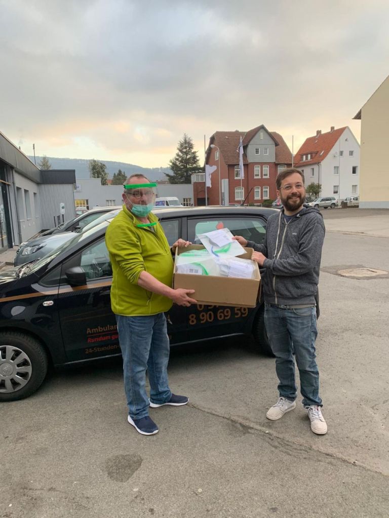 Morgens empfingen mich vier Mitarbeiter des Intensivpflegedienstes mit großer Freude. Schutzausrüstung sei praktisch nicht zu bekommen: „Wir bereiten schon Masken wieder auf“, sagte man mir. Die Gesichtsmasken ergänzen jetzt den Schutz für Pflegeteam und Patienten, da gerade bei der Pflege von beatmeten Menschen große Vorsicht notwendig ist. „Die sind richtig professionell!“, bekomme ich als Rückmeldung zu den Masken und kann den Eindruck nur bestätigen. Das ist großartige Ausrüstung, die aus den Bastelzimmern der Republik kommt. Eingesetzt wird es nun bei Patienten, die unter anderem auch beatmet werden müssen.
