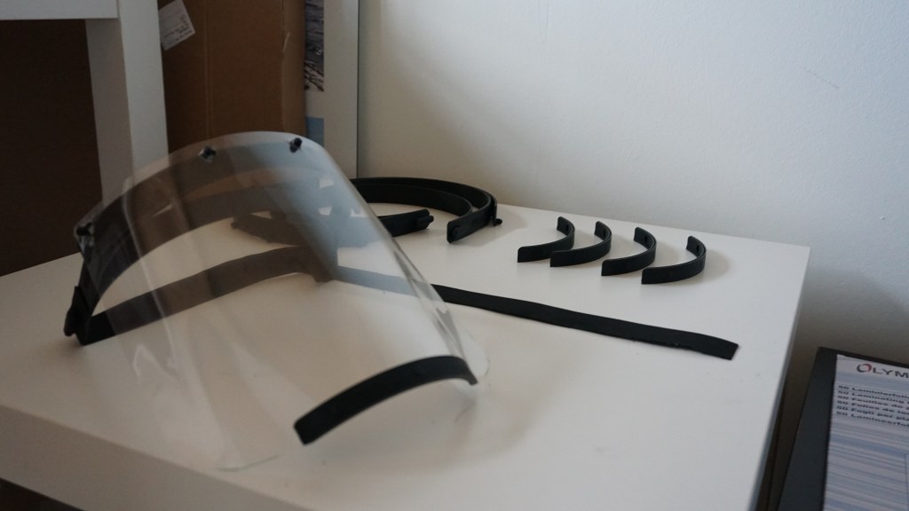 In zwanzig eingeschweißten Paketen (um Kontamination zu verhindern) belieferte ich einen Intensivpflegedienst mit den Face-Shields. Quelle: MakersHelpCare